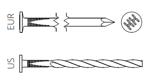 - Ring or Screw Shank - Favoured in Europe and North America for construction, framing, and pallet nails due to their superior holding power.